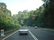 Fraser(フレイザーズ・ヒル)」とかかれた道路標識が表れる。(写真右) すかさずそこを右に折れる。そこから30キロ。あとは道なりに進むと次第にくねくねの山道になっていく。 |