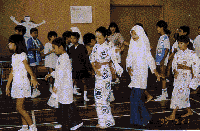 年に一度の運動会は、幼稚部、小学部、中学部合同で行われる。とにかく暑いので父兄は朝一から限られたスペースのテント下を確保しようとこれも必死。何とか場所だけ確保するとお父さんはビール片手に観戦体制にはいるのだ。子供の運動会で父兄たちがビールで宴会状態、というのも日本じゃちょっとないですね。結局、子供が何やってたか見てなかったりするわけね。お昼のお弁当一番人気は冷え冷えのソーメン。これでも暑さはなかなか癒せない。