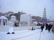 ールなどの大雪像の間に市民が一生懸命作った市民雪像が彩りを加える。夜は赤や黄