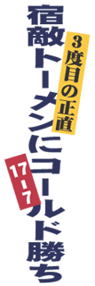 総合順位決定戦は、過去2回とも決着のついていないトーメンとの因縁の対決となりました。しかも、トーメンはこれが最後の試合と聞き、久々に私もエキサイトしました。しかし、残念ながらトーメンはベストコンディションとはいかなかったようですね。力も技も現在がチームのピークとも言えるJalanJalanを相手に苦しい試合展開になりました。それにしても、今シーズンの総決算として、JalanJalanの戦いぶりは完璧でした。第2試合入れ替わりのREDSやMECOMも「決勝戦の相手がJalanJalanでなくてよかった」と言ったとか言わなかったとか。・・・・え?あ、言わなかったんですか。そうですか。来シーズンのJalanJalanは、さらに戦力補強がなされ、攻守共にワンランクパワーアップした戦いぶりが期待できます。3年待ちました。いよいよ、来季は同リーグのMECOM、REDSを撃破して悲願の総合優勝に挑戦です。是非、頑張ってください。今季は試合、そして幹事、本当にご苦労様でした。総合第3位、おめでとう! |