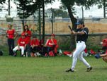 試合はREDSの先制で始まったが、その後小刻みに加点するJalanJalanがじわじわと追い上げ、梅原がREDS打線を抑える一方で、6回裏にとうとう逆転する。ところが、最終回、勝利を目前にしたJalanJalanの隙を突くようにREDS打線が再び逆転。最終回裏、JalanJalanはスコアリングポジションに走者を進めながらあと1本が出ず、そのまま7対8で強豪REDSの前に屈した。これで対REDS戦は、引き分けを挟んで3連敗となった。しかし、今季Bリーグは強豪揃いの組み合わせとなったため、今後の動向は予断を許さない。 (写真は、ゲームセットに喜び合うREDSナイン。) |