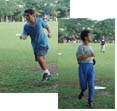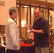 マレーシアでは一般的な風習、VIP席。この日も大使、日本人学校校長、日本人会事務局長、日本人会理事文化スポーツ委員長など「長」の付く人が一杯。その他上位3位までの監督にはこのVIP席が用意されたが、座りなれている他の監督と違い、居心地悪し。右の写真はJalanJalan。所在無いので勝手に乾杯して勝手に料理を取ってきて食い始めているが、その後、給仕が一皿ずつ料理をサーブし始め、2度食いする羽目になることをまだ知らない。 |